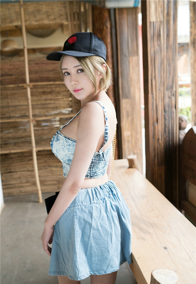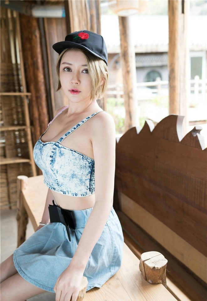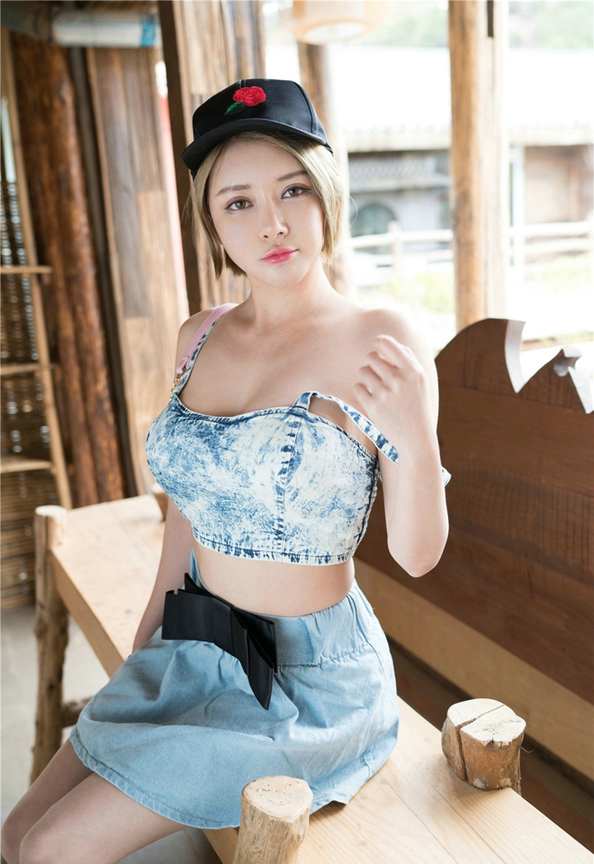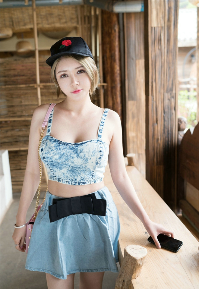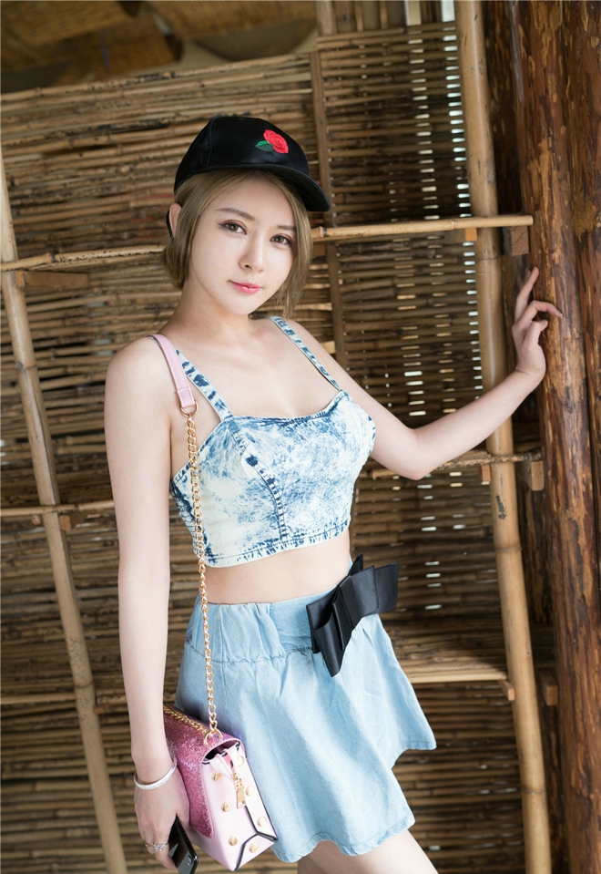 靓丽清纯牛仔短裙小美女凯竹BuiBui户外吊带露脐装阳光娇媚诱人写真