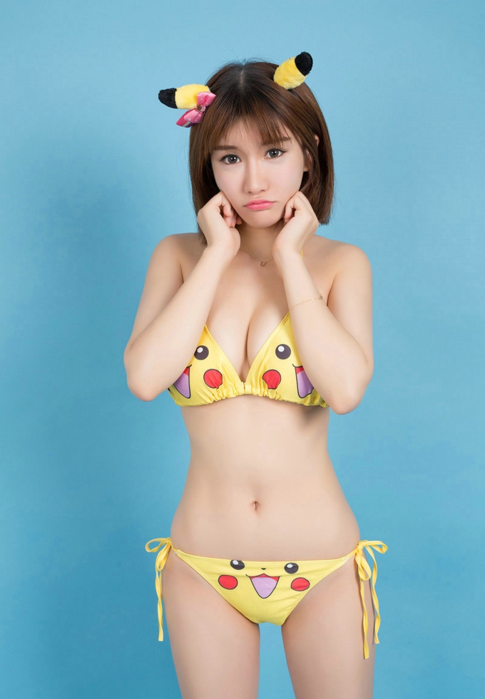 K8傲娇萌萌Vivian皮卡丘比基尼诱惑可爱卖萌爆乳翘臀美腿气质写真